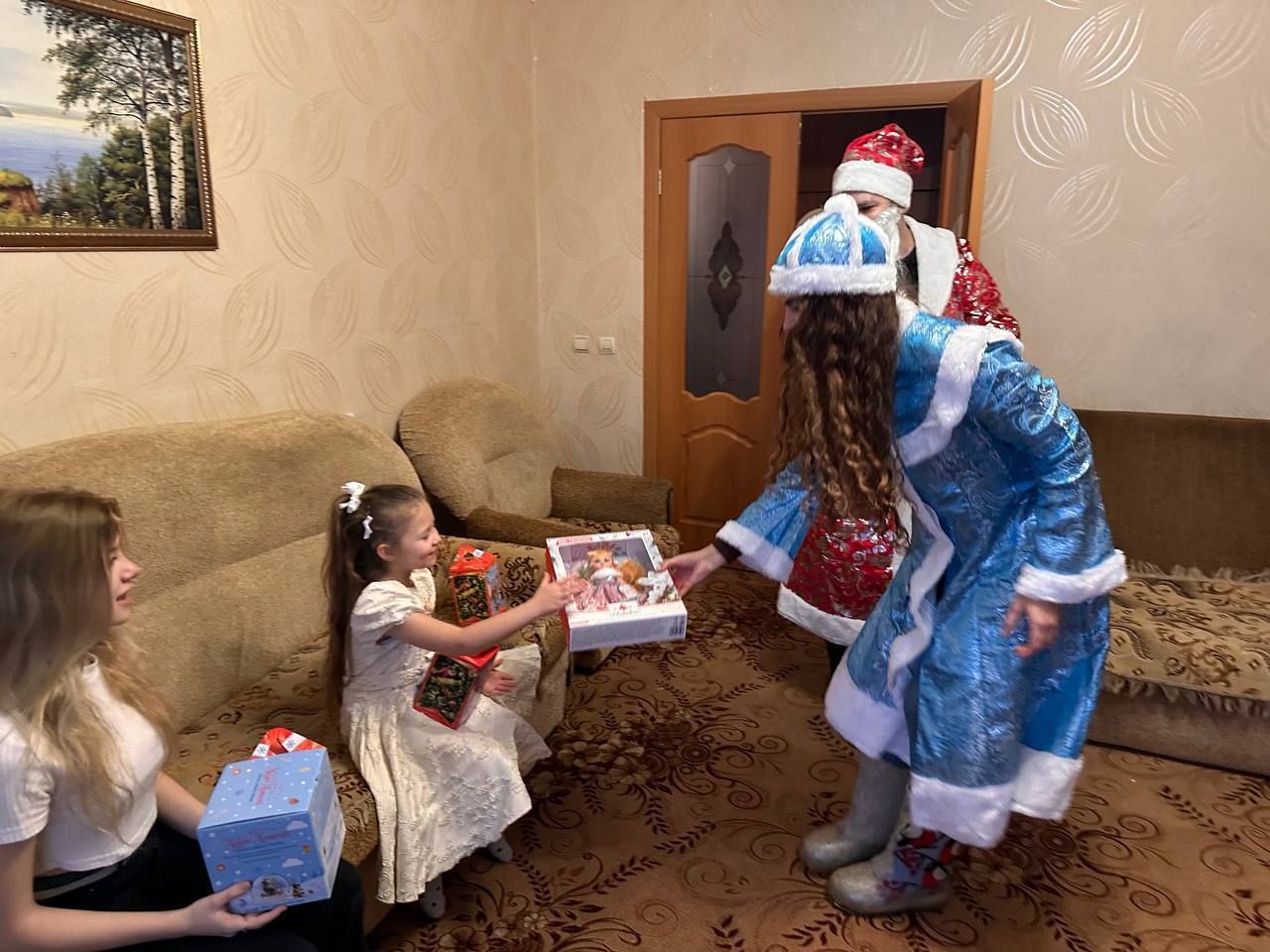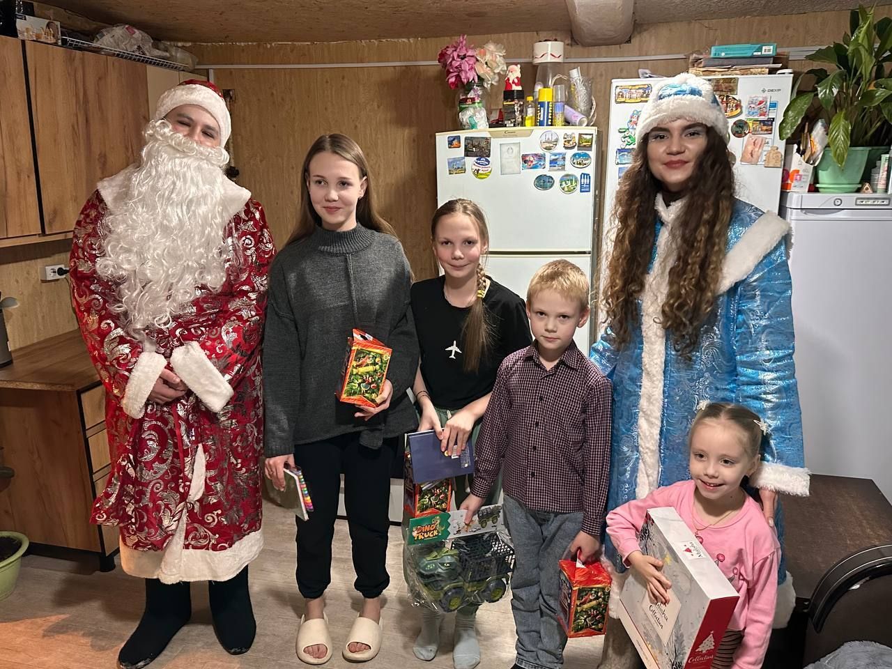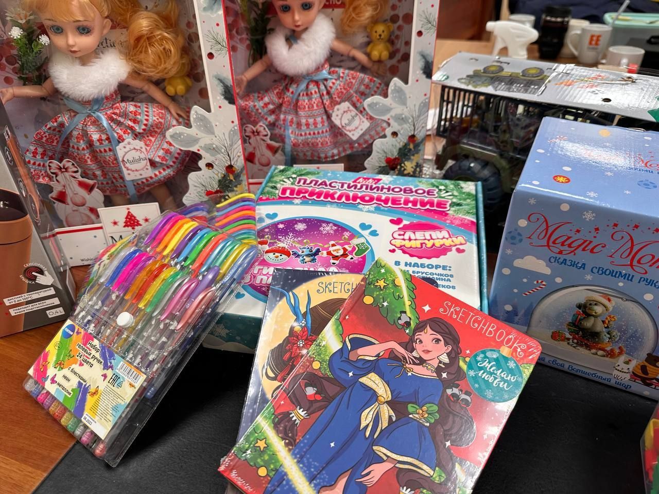 Немного бороды из ваты, грима и тёплых валенок помогли представителям Ассоциации перевоплотиться в настоящих волшебников - Деда Мороза и Снегурочку. Каждый ребёнок получил индивидуальный подарок, учитывающий его возраст и предпочтения. Так, девочкам подарили куклы, мальчикам - машины с фигурками динозавров, а творческих ребят порадовали разнообразные наборы для создания новогодних шаров; юных художников - наборы разноцветных ручек и скетчбуки.